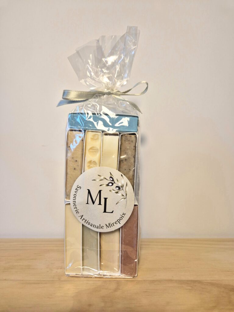 ✔️ 3 savons sans huile essentielle adaptés aux peaux délicates (190g) : Douceur Lactée, L’immortelle, Délicatesse fabriqué dans notre Savonnerie à Mirepoix